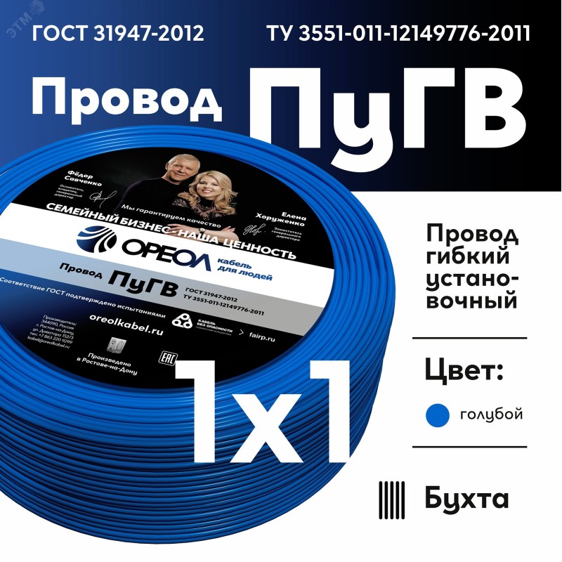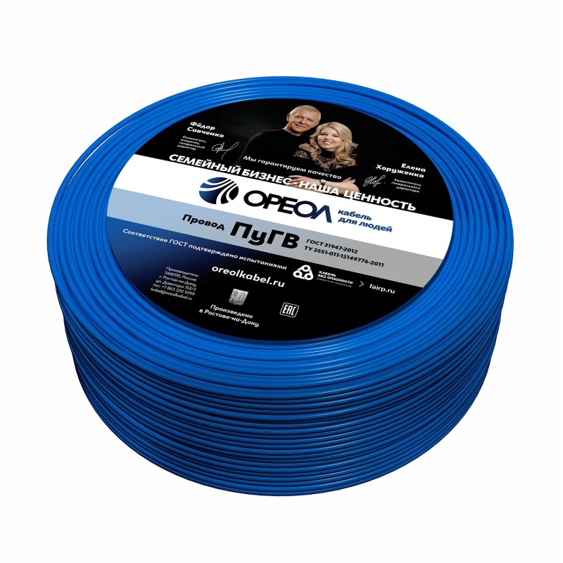 - Расцветка провода:Синий