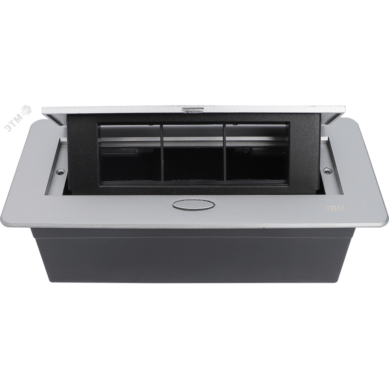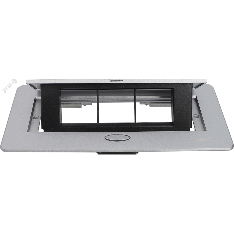 Встраиваемый настольный лючок, 4 модуля, C-Line. Настольный лючок – изделие, включающее в себя верхнюю открывающуюся крышку и кронштейны для крепления приборных рамок и приборной коробки. Настольный лючок предназначен для размещения ЭУИ в столе. Монтаж производится в предварительно подготовленное отверстие 160х104 мм для 4 модулей. Сетевой кабель питания (2 метра), приборная коробка, приборные рамки и крепеж в комплекте.