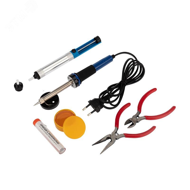 - Преимущества:Полный набор для проведения работ любой сложности|Подставка под паяльник имеет термостойкое покрытие|Припой спиралью в колбе для удобства использования|Бокорезы и тонкогубцы в комплекте для механической работы с проводами