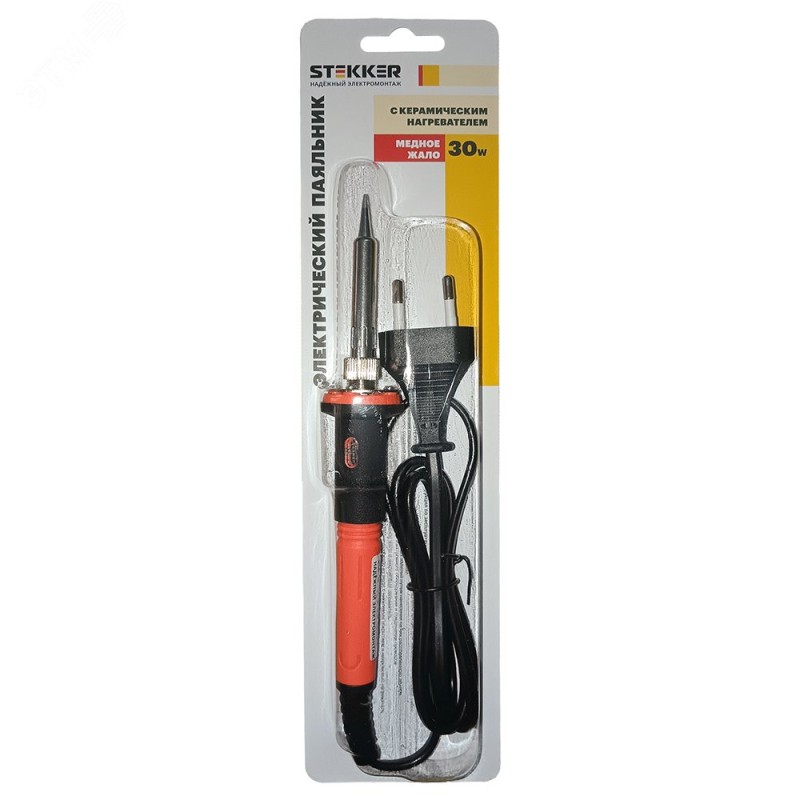 PLE211-30 Паяльник универсальный 30W с керамич. сердечником, долговечное жало, 230В. Электрический нагревательный прибор, предназначенный для выполнения паяльных работ путем плавления специальных сплавов (припоев) и нанесения их на изделие. Паяльник имеет съемное жало, рукоятка выполнена из пластика с резиновой накладкой, что опеспечивает комфортное пользование. Индикатор на рукоятке показывает, включен ли паяльник в сеть.