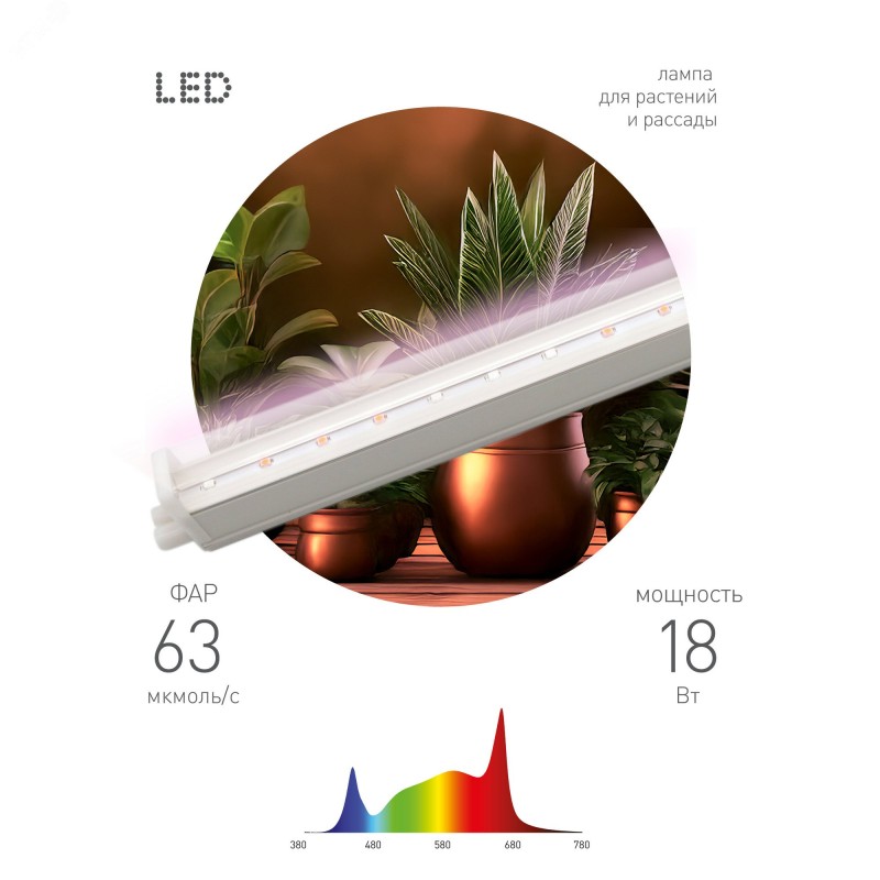 Светодиодная линейная лампа мощностью 18 Вт – идеальное решение для всех, кто мечтает о здоровых и крепких растениях круглый год. Благодаря высокому индексу цветопередачи Ra90, свет фитолампы максимально приближен к естественному солнечному, что стимулирует фотосинтез и способствует активному развитию ваших зеленых питомцев. ЭРА FITO-18W-Ra90 – это не только мощный, но и экономичный источник света. Светодиодная технология обеспечивает низкое энергопотребление и долгий срок службы, что позволит вам наслаждаться красотой растений, не беспокоясь о высоких счетах за электроэнергию. Установите фитолампу в любом удобном месте – над рассадой, комнатными цветами или даже в теплице. Ее компактный и лаконичный дизайн гармонично впишется в любой интерьер.