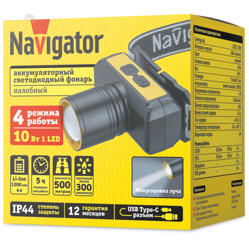 - Преимущества:Увеличенная мощность 10 Вт | Zoom-фокусировка луча одним движением | 4 режима работы: яркость 50% и 100%, мерцание, SOS | Емкий литий-ионный аккумулятор 1,2 А·ч обеспечивает до 5 часов автономной работы | Кабель USB A/Type-C длиной 30 см поставляется в комплекте | Индикатор заряда расположен на корпусе фонаря | Конструкция позволяет изменять угол наклона фонаря