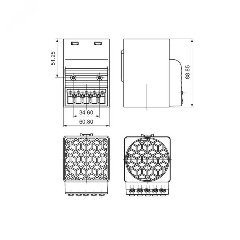 Компактный обогреватель с вентилятором мощностью 400 Вт предназначен для поддержания необходимой температуры внутри электротехнического шкафа. Питающее напряжение – 230 В с частотой 50/60 Гц. Обогреватель изготовлен из высококачественных материалов, обеспечивающих надежную работу. Степень защиты – IP20. Благодаря компактным размерам 61x93x95 мм этот обогреватель легко устанавливается в ограниченном пространстве. Рабочий диапазон температур от -45 до +70 градусов Цельсия делает его подходящим для использования в суровых условиях эксплуатации. Обогреватель оснащен резистивным нагревательным элементом, что обеспечивает стабильную и долговечную работу.