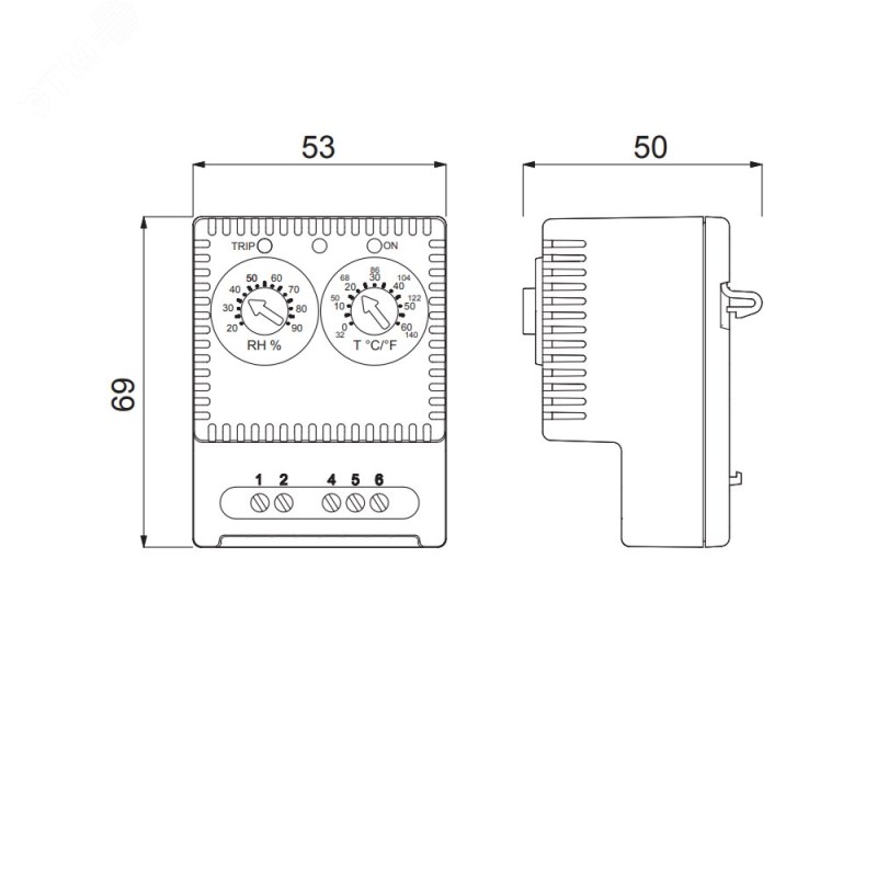 - Преимущества:Объединяет функции термостата и гигростата|Поддерживает температуру от 0 до +60 градусов и влажность от 20 до 90%|Предназначен для управления вентиляцией и обогревом|Устанановка на DIN-рейку