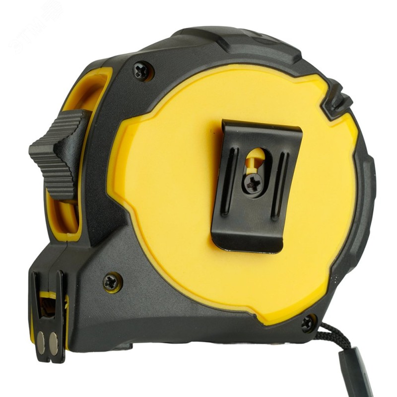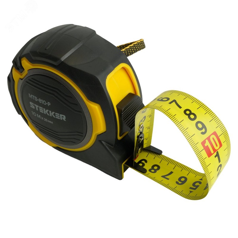 MTS-810-P Рулетка, 10 м х 25 мм, магнит, II класс точности, двухстороннее нанесение. Измерительный прибор для определения линейных размеров объекта. Магнитный зацеп с двусторонней функцией захвата и кнопкой на нижней части корпуса для дополнительной фиксации полотна рулетки, так же имеется функция автовозврат. На задней части рулетки находится металлическая клипса для фиксации на поясе, сбоку ремешок-держатель выполнен из нейлона.
