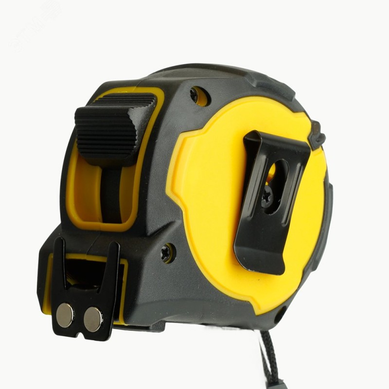 MTS-85-P Рулетка, 5 м х 25 мм, магнит, II класс точности, двухстороннее нанесение, STEKKER. Измерительный прибор для определения линейных размеров объекта. Материал корпуса: ABS пластик, термопластичная резина. Материал полотна: высокоуглеродистая сталь. Цвет полотна: матовое полотно желтого цвета. Разметка на полотне: двустороннее. Магнитный зацеп с двусторонней функцией захвата и кнопкой на нижней части корпуса для дополнительной фиксации полотна рулетки, так же имеется функция автовозврат. Доп: на задней части рулетки находится металлическая клипса для фиксации на поясе, сбоку ремешок-держатель выполнен из нейлона.