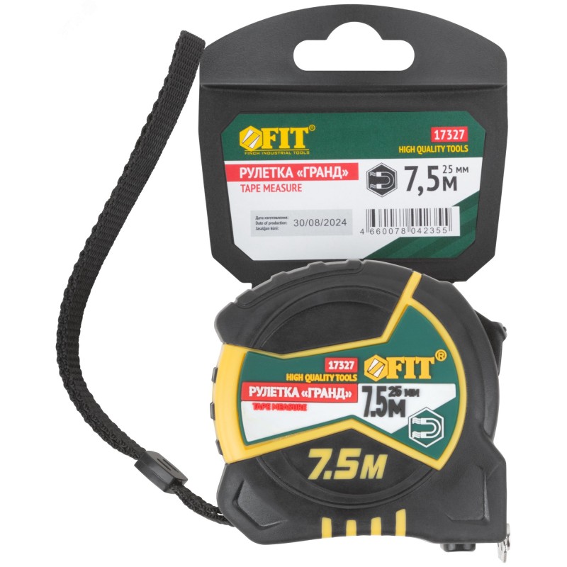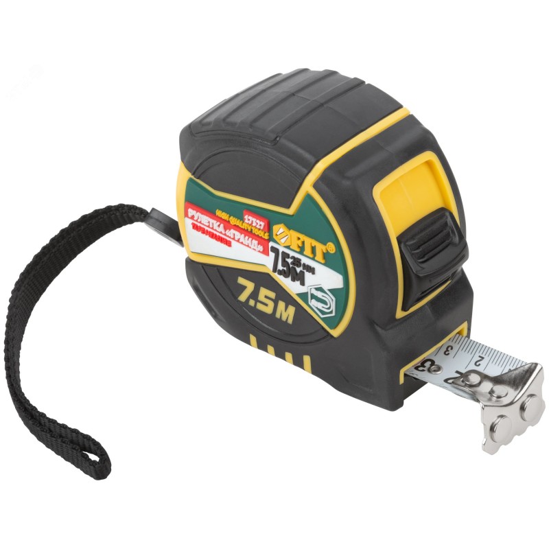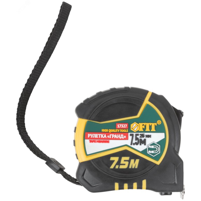 Рулетка "Гранд", калибр.лента, нейлон.покр., м гн.крючок, двойной стопор, прорезин.корпус 7,5 м х 25 мм"