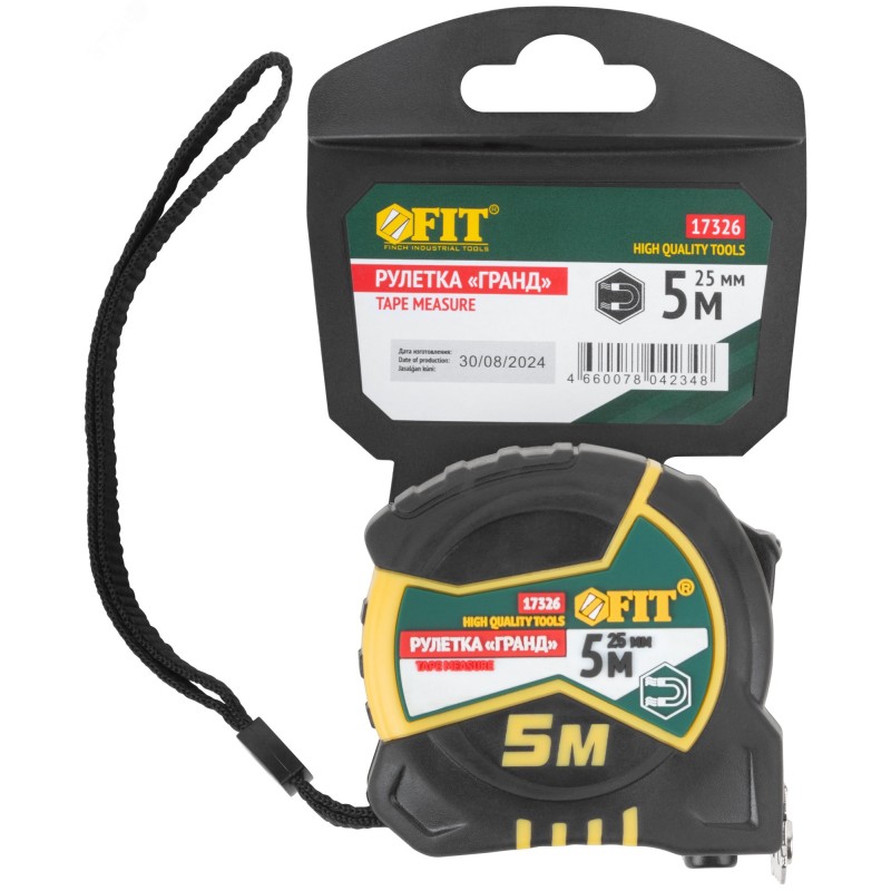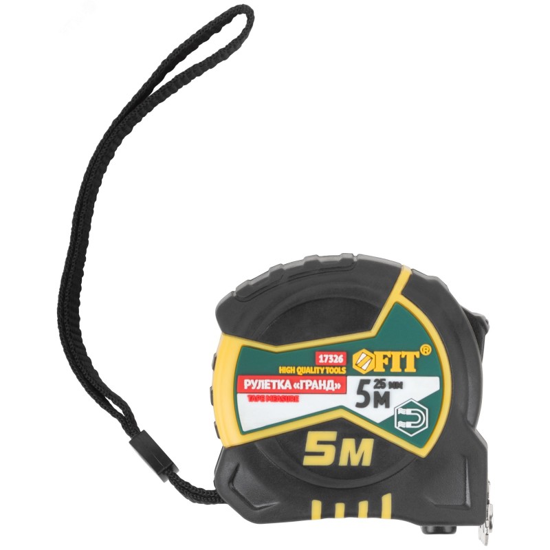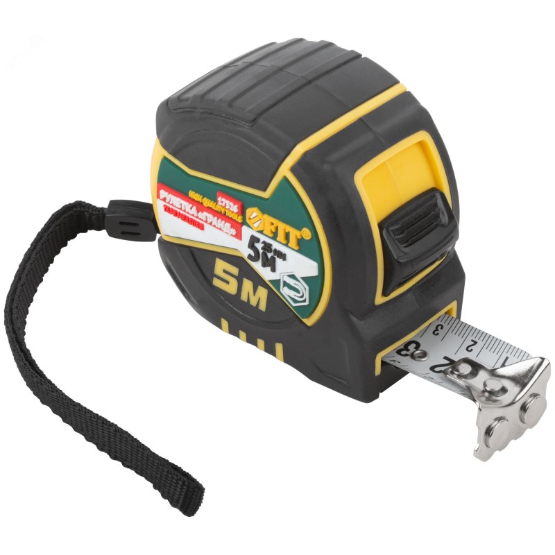 "Рулетка ""Гранд"", калибр.лента, нейлон.покр., магн.крючок, двойной стопор, прорезин.корпус 5 м х 25 мм"