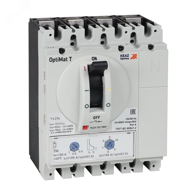 - Номинальный ток, А:125