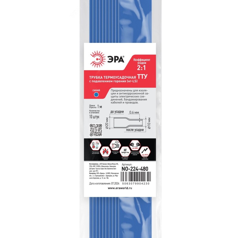 Общепромышленные термоусадочные трубки ТТУ нг-LS в отрезках по 1 метру представляют собой универсальное решение для изоляции, маркировки и бандажирования, изготавливаются методом экструзии из специального состава полиолефина с добавлением антипиренов. Коэффициент термоусадки 2:1 обеспечивает надежную фиксацию и защиту, а широкая цветовая гамма и разнообразие диаметров позволяют подобрать оптимальный вариант для различных задач. Рабочее напряжение Ue: 690 B. Температура усадки: +80 / +110 градусов. Температура эксплуатации: -55 / +115 градусов. Относительное удлинение при разрыве: min 300 %. Прочность на растяжение: не менее 15 Мпа. Электрическая прочность: не менее 15 кВ/мм.