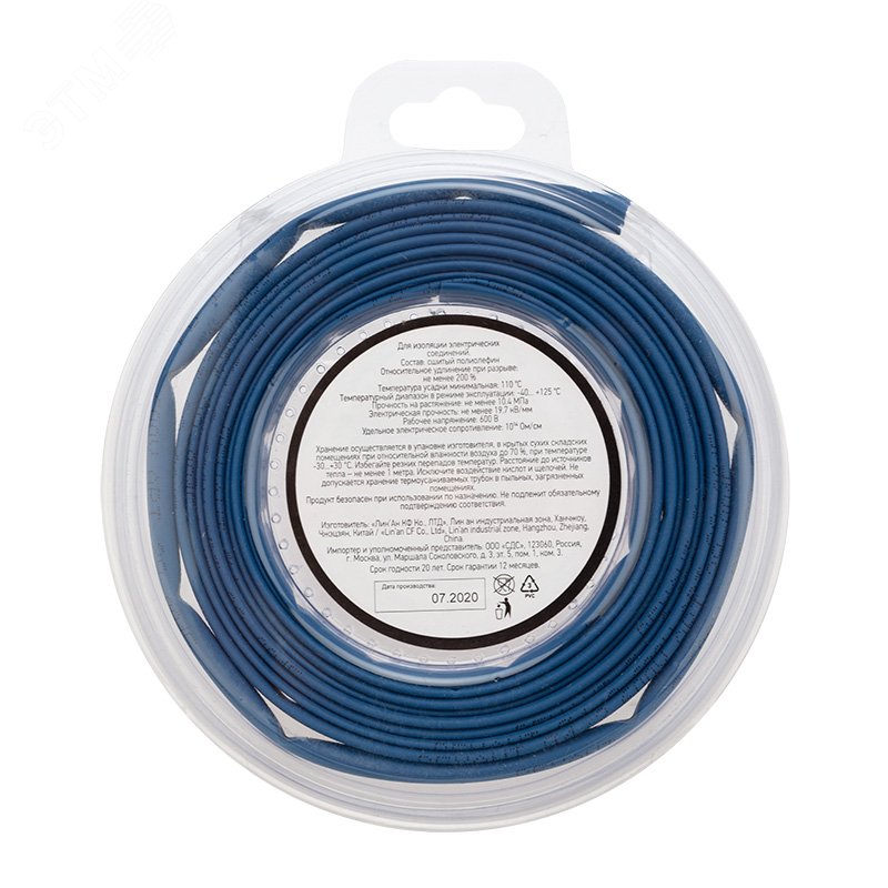 Трубка термоусадочная ТУТ нг-LS (2:1)-4/2 синяя (ролик 2.44м)