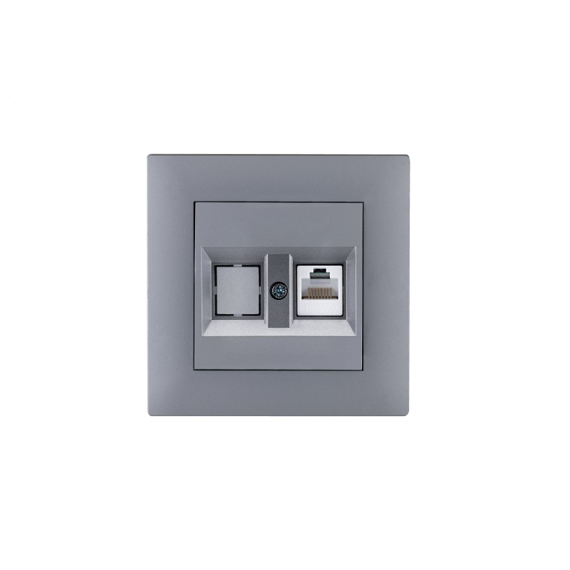 Розетка компьютерная CAT5+гнездо KAREA RIZZ STAR серебро