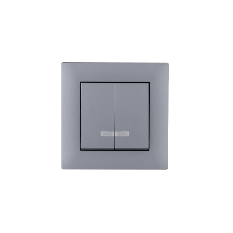 Выключатель двухклавишный с подсветкой KAREA RIZZ STAR серебро