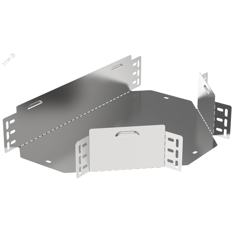 Разветвитель Т-образный горизонтальный предназначен для организации Т-образного ответвления кабельной трассы в горизонтальной плоскости. Аксессуар поставляется в плоском виде, имеет направляющую перфорацию для сгиба и сборки изделия перед установкой. Стыковка аксессуара с лотком осуществляется за счёт телескопического соединителя. Подходит для всех типов листовых лотков серии ESCA. Крышка на аксессуар заказывается отдельно. Аксессуар изготовлен из стали оцинкованной методом Сендзимира (защитный слой цинка не менее 5-10 мкм).