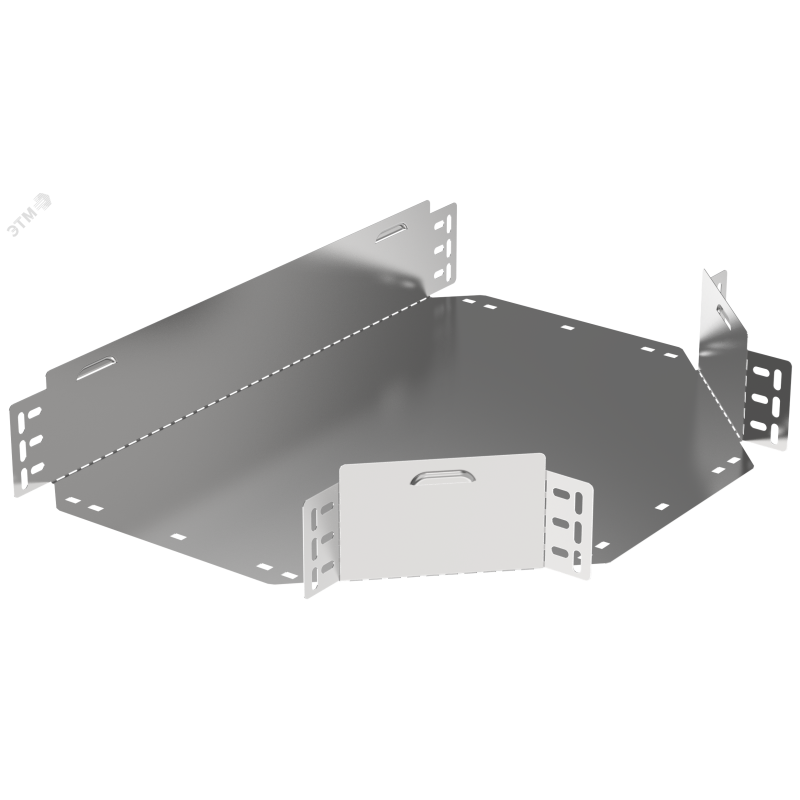 Разветвитель Т-образный горизонтальный предназначен для организации Т-образного ответвления кабельной трассы в горизонтальной плоскости. Аксессуар поставляется в плоском виде, имеет направляющую перфорацию для сгиба и сборки изделия перед установкой. Стыковка аксессуара с лотком осуществляется за счёт телескопического соединителя. Подходит для всех типов листовых лотков серии ESCA. Крышка на аксессуар заказывается отдельно. Аксессуар изготовлен из стали оцинкованной методом Сендзимира (защитный слой цинка не менее 5-10 мкм).