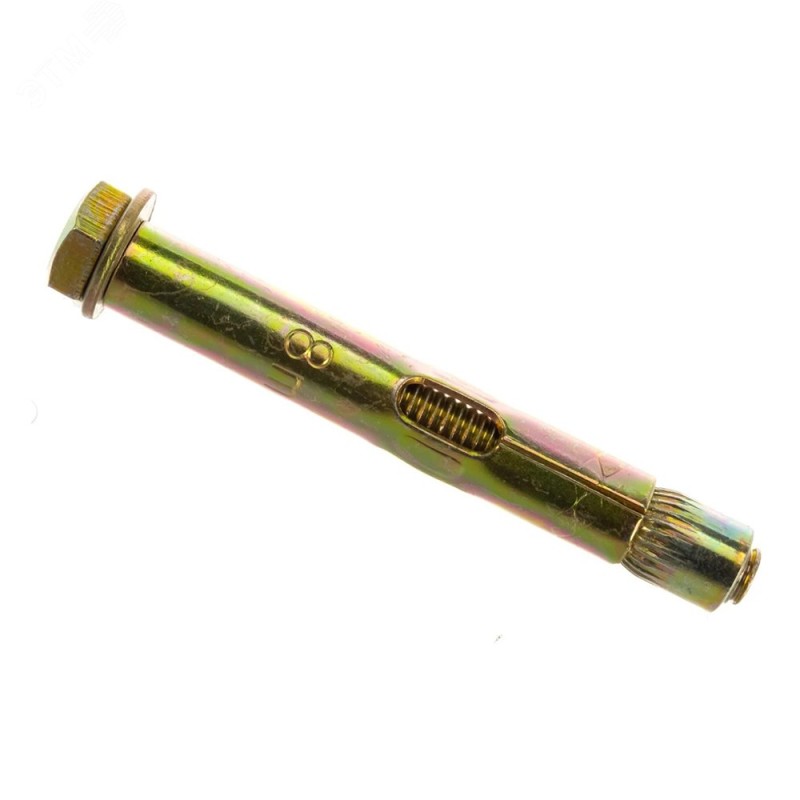Анкерный болт применяется при монтаже оборудования и элементов в полнотелый бетон, кирпич и камень. Изготовлен из стали, покрытой цинком с двойной пассивацией. Состоит из втулки, болта, конусной гайки и шайбы.