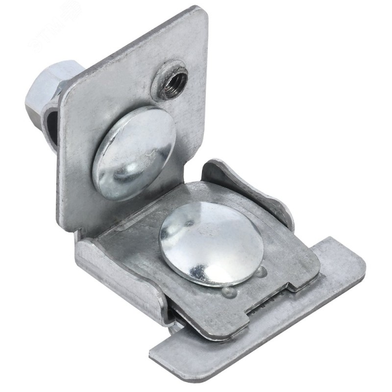 Держатель проводника круглого для фальца товарного знака IEK используется для крепления круглых проводников на стоячем плоском фальцевом шве фальцевой кровли или на других металлических конструкциях.
