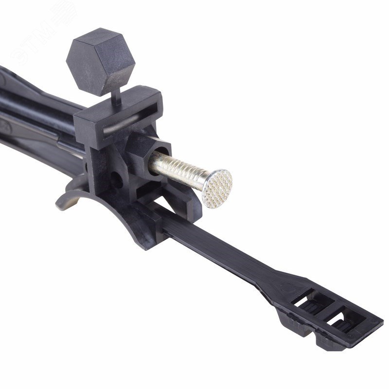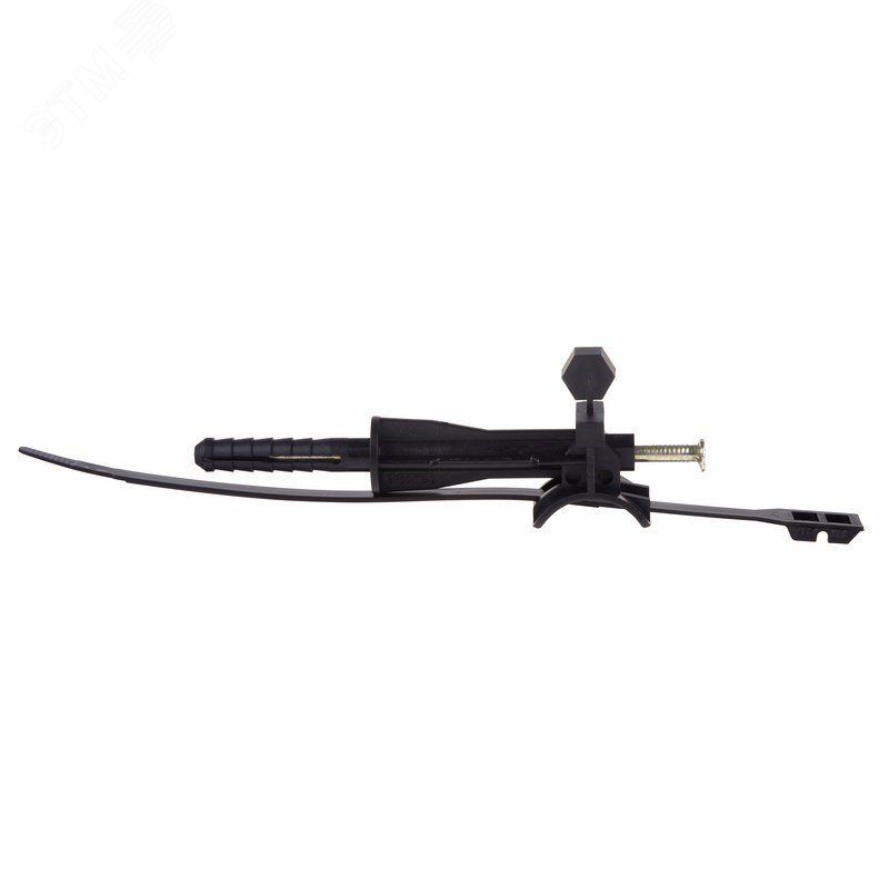 Предназначено для монтажа проводов СИП всех типов вдоль стен и опор ЛЭП. Диаметр пучка проводов 25-60 мм. Крепление изготовлено из атмосферо- и ультрафиолетостойкого диэлектрического полимера, армированного стекловолокном. Расстояние от провода до фасада здания 60 мм. Гвоздь изготовлен из стали горячего оцинкования. Для крепления на деревянном фасаде необходимо срезать ножом концевую часть крепления.