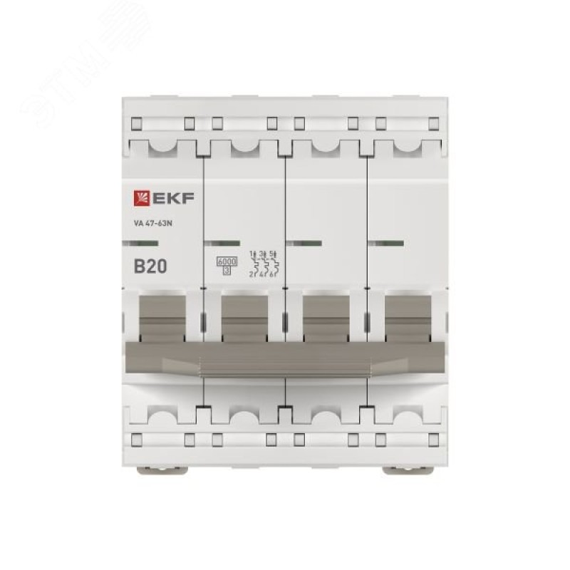 - Комплектация:автоматический выключатель ВА 47-63N 4P 20А (B) 6кА PROXIMA EKF