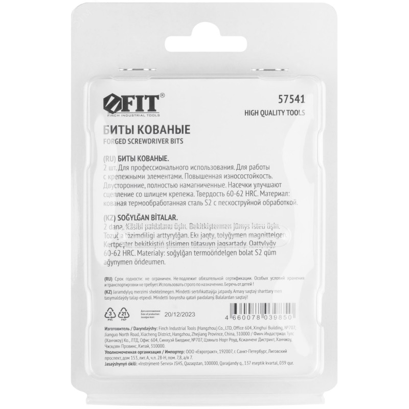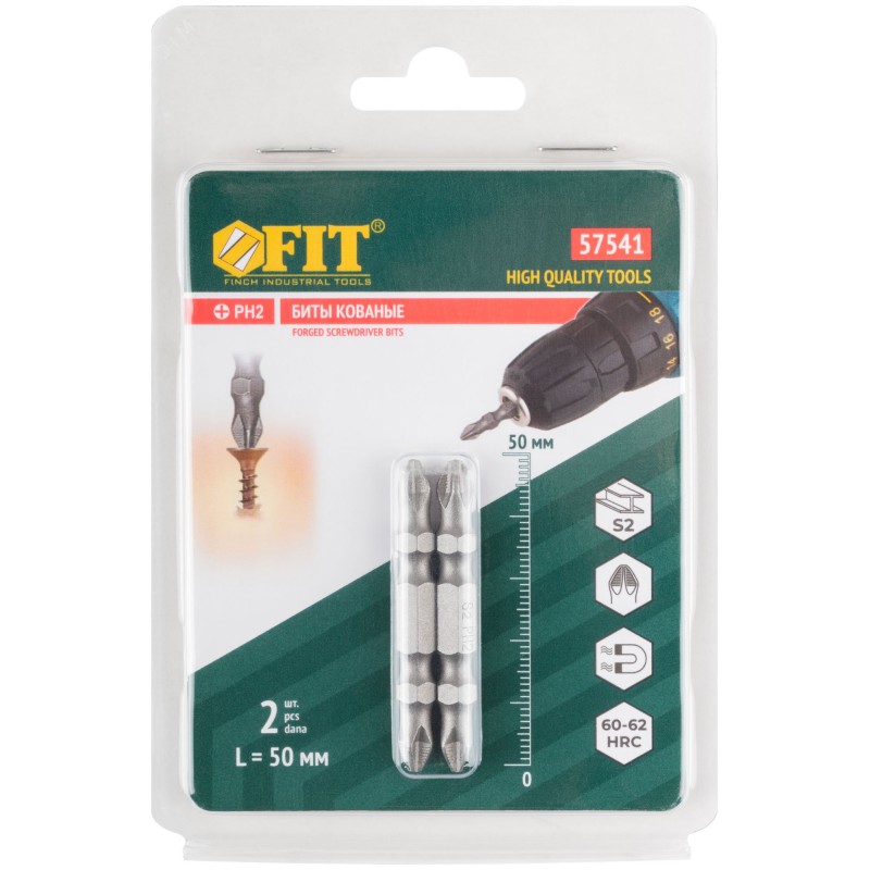 Двусторонние кованые биты FIT HQ — надежное и эффективное решение для частых работ с крепежом. Биты изготовлены из кованой закаленной стали S2 и обладают высоким ресурсом. Насечки создают дополнительное сцепление со шлицем крепежа, предотвращая выскальзывание биты, что препятствует преждевременному разрушению биты и крепежа. Биты проходят процесс прецизионной обточки рабочих граней и имеют высокоточную геометрию. Тонкий стержень биты дает возможность работать в труднодоступных местах. Пескоструйная обработка бит защищает от коррозии. Шестигранный хвостовик предотвращает проворачивание в патроне и максимально передает крутящий момент от электроинструмента. Полная намагниченность бит повышает удобство в работе.