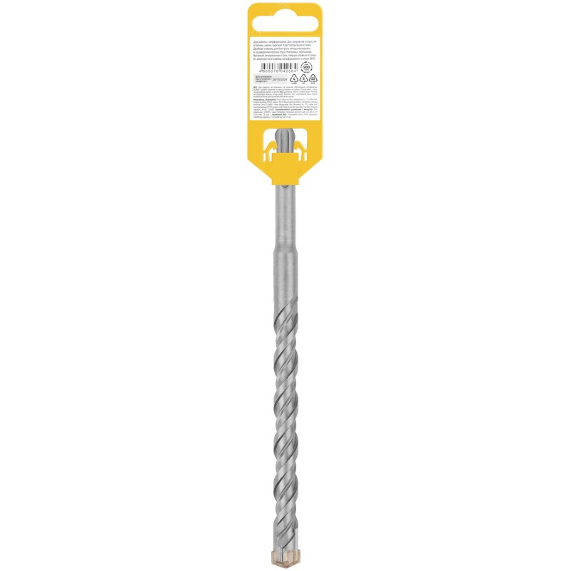 Цельная крестообразная вставка повышает производительность бурения и предотвращает заклинивание при попадании в арматуру. Вставка с добавкой 8 процентов кобальта повышает стойкость к ударным нагрузкам и продлевает срок службы. Мелкозернистая структура и высокая плотность вставки продлевают срок службы. Двойная спираль для эффективного отвода пыли. Специальная обработка бура повышает прямолинейность и минимизирует биения. Улучшенный припой обеспечивает высокую надежность соединения вставки с телом бура.