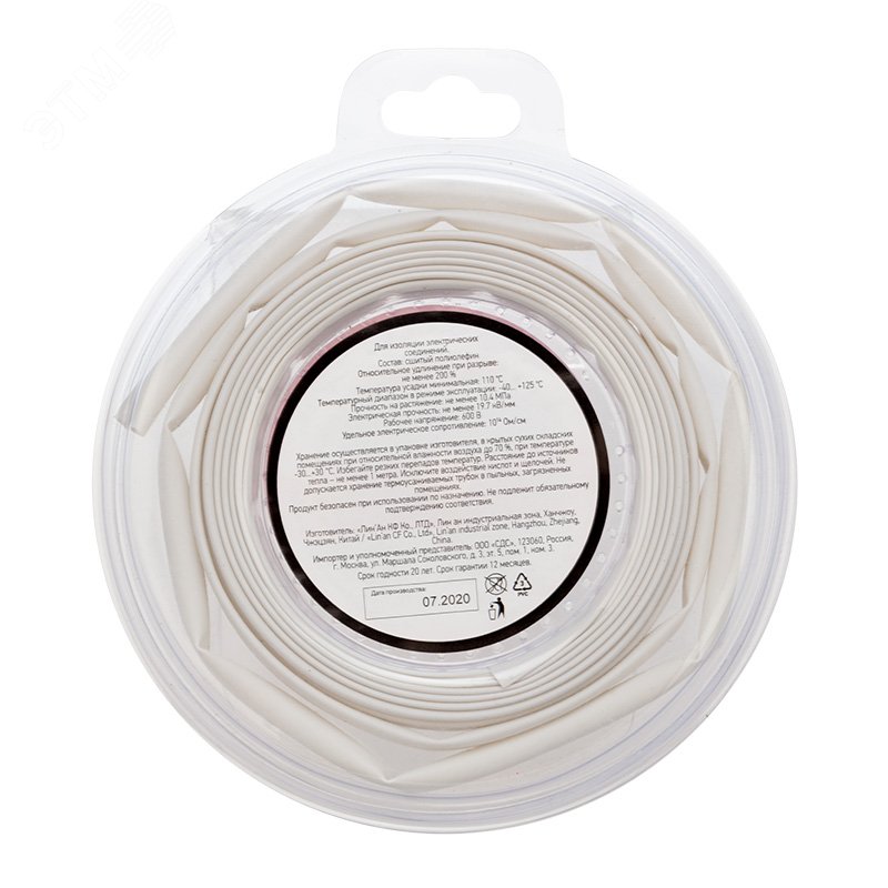 Трубка термоусадочная ТУТ нг-LS (2:1)-4/2 белая (ролик 2.44м)
