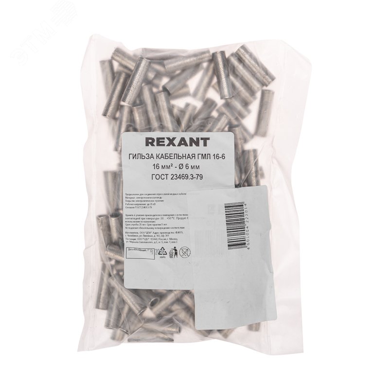 Кабельная гильза ГМЛ 16-6 REXANT предназначена для оконцовывания посредством опрессовки проводов и кабелей с медными жилами. Выполнена из высококачественной меди с лужением и имеет сквозную конструкцию.16 - номинальное сечение гильзы, мм.кв. 6,0 - внутренний диаметр, мм.