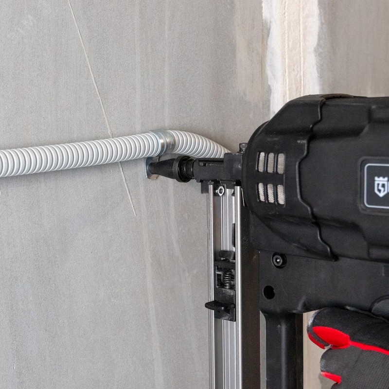 Для крепления металлорукава, металлических и пластиковых труб к различным поверхностям с помощью монтажного пистолета. Материал - оцинкованная сталь. Ребро жесткости, проходящее по арочному изгибу скобы, существенно увеличивает допустимые нагрузки. Быстрый и удобный монтаж с помощью монтажного пистолета без необходимости центрирования ствола пистолета под отверстие и без проскальзывания шапки гвоздя в скобах стандартного исполнения