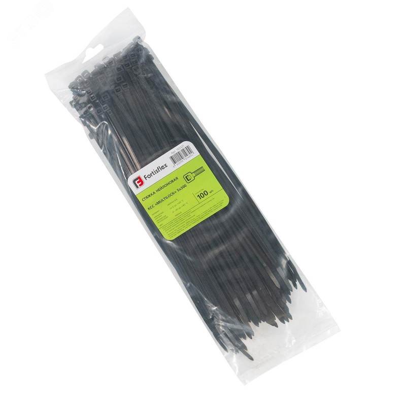 Для крепежа и соединения в жгут кабелей и проводов. Материал стяжки - нейлон 6.6, самозатухающий, без галогенов. Цвет - черный. Температура эксплуатации - от -40град. по Цельсию до +85град. по Цельсию. Температура монтажа - от 0град. по Цельсию до +60град. по Цельсию. Зубцы размещены на обеих сторонах ленты. Замковый механизм одностороннего хода, неразъемный. Уникальная конструкция замка ''MULTILOCK'' с тремя зонами крепления увеличивает площадь зацепления и повышает допустимую рабочую нагрузку на 30%. Инструмент для монтажа - TG -01 (для стяжек шириной 2.5—4.8 мм), TG -03 (для стяжек шириной 3.6—12.5 мм)