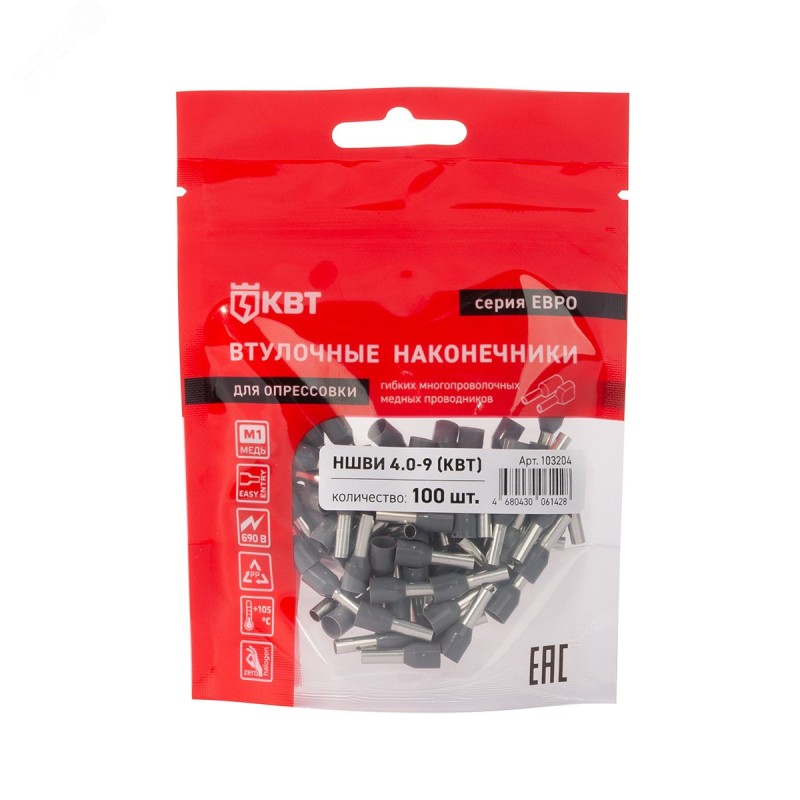 - Преимущества:Благодаря современной технологии, НШВИ серии ''ЕВРО'', отлитые на термопластавтоматах, обладают прецизионной Easy-Entry формой без ''швов'', ступенек и задиров. |Наконечники серии ''ЕВРО'' рекомендованы для автоматических и полуавтоматических машин для опрессовки втулочных наконечников