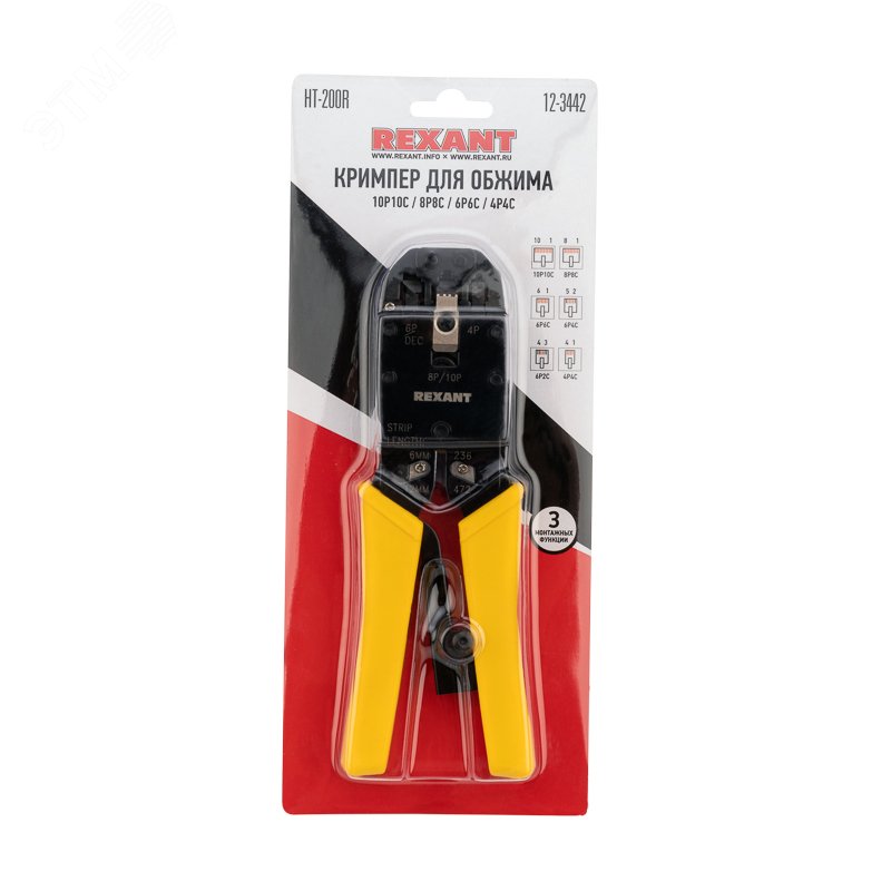 Кримпер REXANT HT-200R — универсальный инструмент для обжима Разъемов RJ-45 (8P8C и 10P10C), RJ-12 (6P6C), RJ-11 (6P4C и 6P2C) и RJ-10 (4P4C), а также для снятия изоляции и обрезки проводов. Режущая кромка для равномерной обрезки проводов и снятия изоляции. Корпус выполнен из высокопрочной хром-ванадиевой стали, обработан воронением. Возвратный механизм для обеспечения обратного хода рукояток. Храповой механизм гарантирует полный цикл качественной опрессовки. Удобные рукоятки с нескользящим плотным синтетическим покрытием сделают работу с инструментом легкой и приятной.