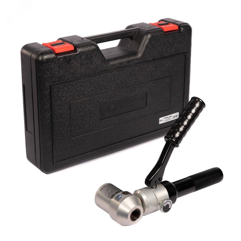 гидравлический угловой пресс ПГРОу-60А|набор из 8 сменных перфоформ|резьбовые шпильки М10/20 и М20/20 – 2 шт|опорная втулка|ремкомплект (уплотнительные кольца)|прочный пластиковый кейс