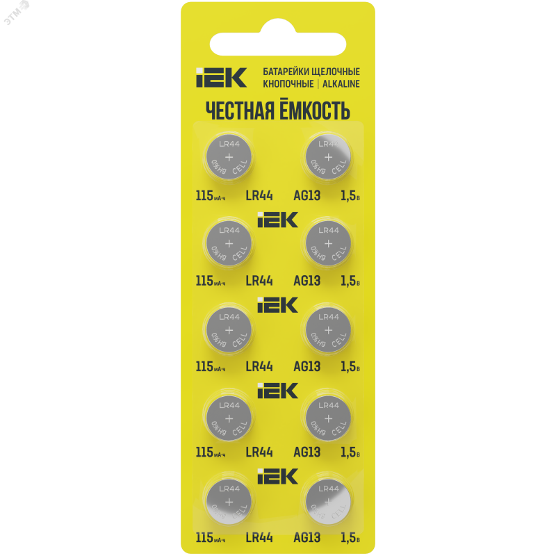 Батарейка щелочная кнопочная LR44/AG13 (10шт/отрывной блистер) IEK