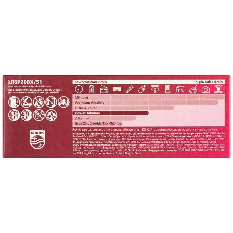 - Преимущества:Отлично подходит для устройств с высоким энергопотреблением|Цветная маркировка облегчает определение размеров элементов питания|Понятные схематические инструкции по эксплуатации|Не наносит вреда окружающей среде|Щелочные батарейки Philips не содержат кадмий, ртуть и свинец|Сохраняет заряд до 10 лет