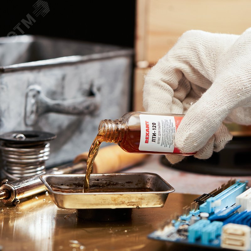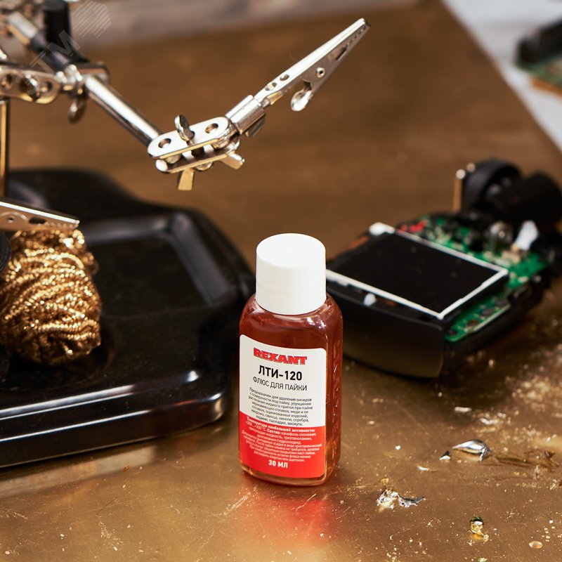 - Преимущества:Не проводит ток|Не требует отмывки после пайки|Повышает прочность соединений