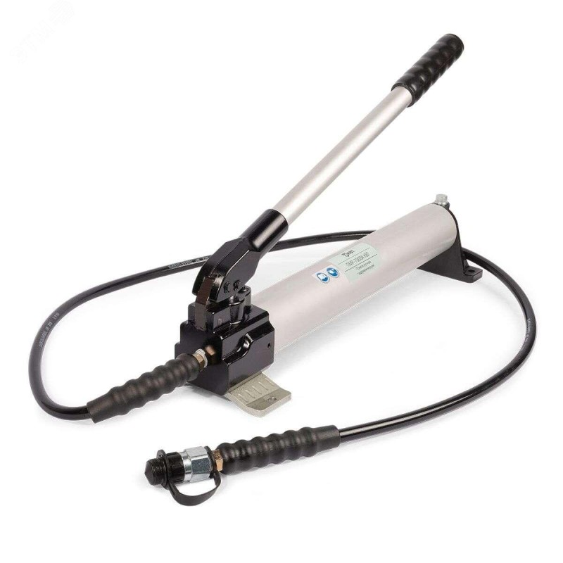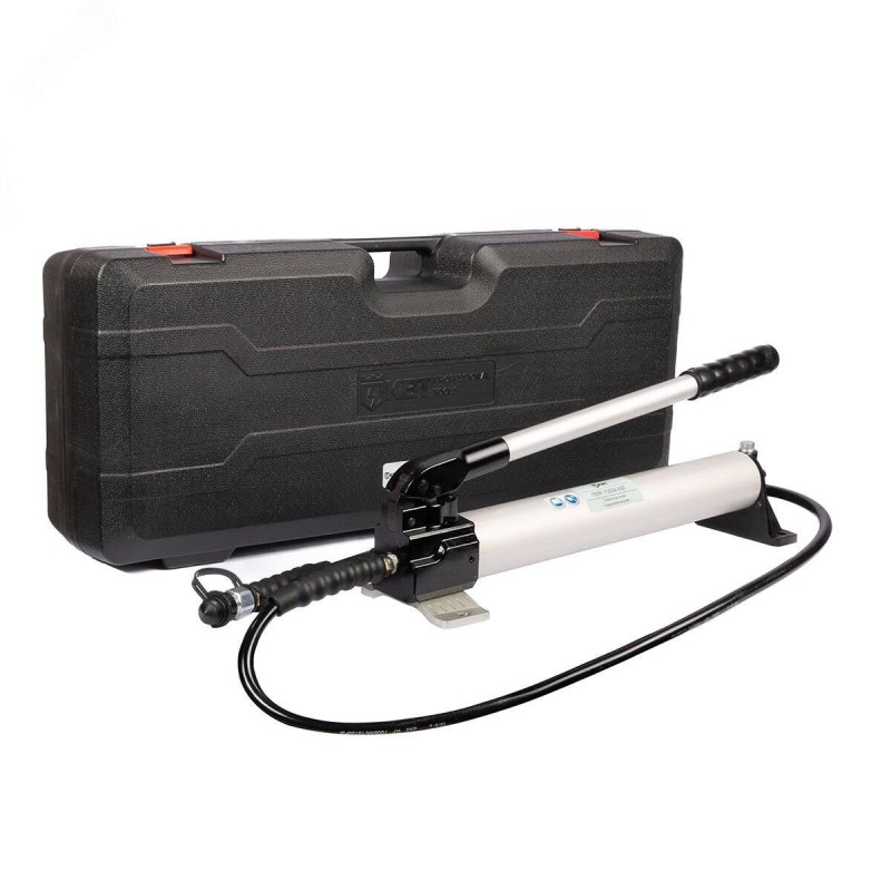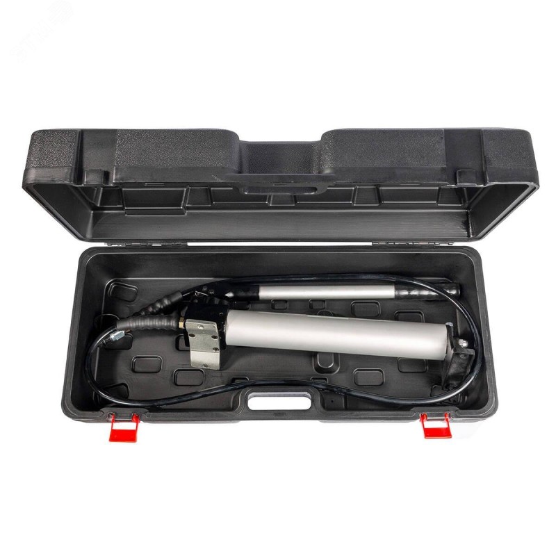 В комплекте - гидравлическая помпа ПМР -7009А. рукав высокого давления длиной 1.8 м. прочный пластиковый кейс 760x340x200 мм. Объем маслобака - 0.9 л. Корпус маслобака изготовлен из легкого и прочного алюминиевого сплава. В 2 раза легче чем аналогичная модель со стальным корпусом. Максимальное давление - 700 бар (70 МПа). Механизм автоматического сброса давления (АСД). Ручной сброс давления поворотом рукоятки. Двухступенчатое нагнетание давления. Присоединительная резьба на конце РВД - K 3/8'' ''вилка'' по ГОСТ 6111 -52. Вес инструмента - 5.60 кг / Вес комплекта - 10.50 кг. Упаковка - пластиковый кейс