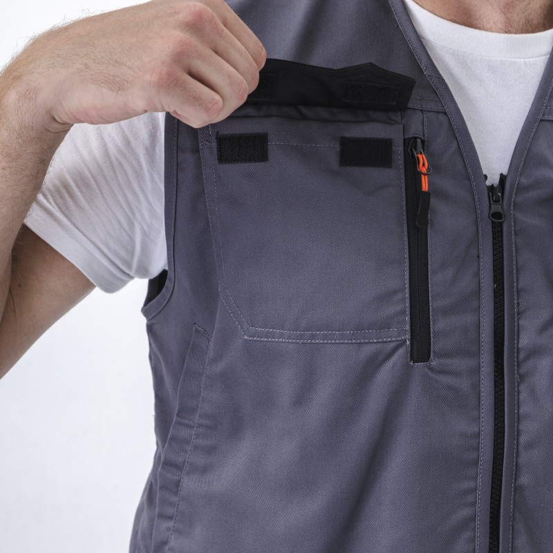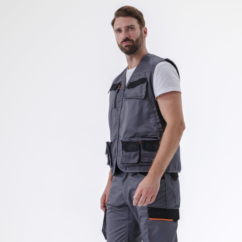 - Дополнительная информация:цвет - серый/оранжевый|материал - твилл (twill)|состав - 65% полиэстер, 35% хлопок|плотность ткани - 245 г/м2|материал вставки - твилл (65% полиэстер, 35% хлопок)|плотность вставки - 245 г/м2|количество карманов - 11|тип застежки - молния|ТР ТС 019/2011 - Одежда специальная для защиты от общих производственных загрязнений и механических воздействий (истирания) - жилет из смешанных тканей - З МИ|EN ISO 13688