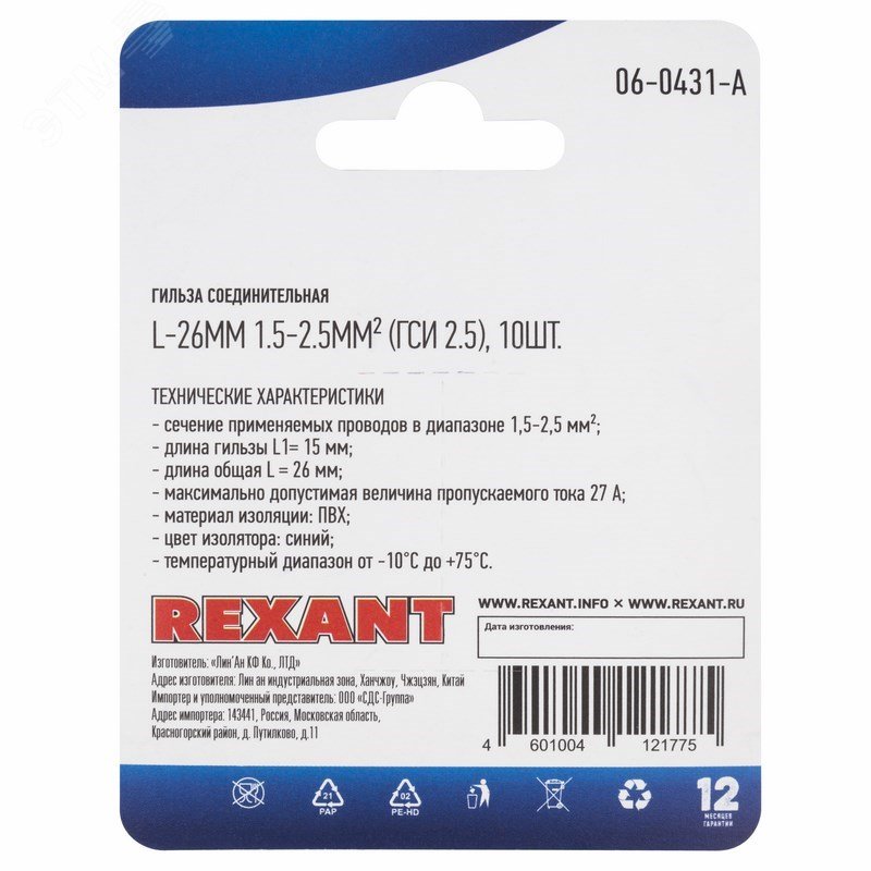 - Комплектация:соединительная гильза – 10 шт.|упаковка