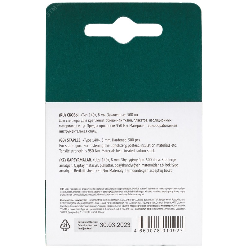 - Тип изделия:Скоба для степлера