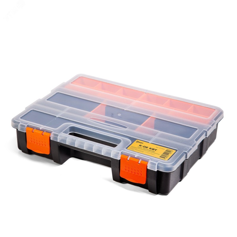 Пластиковый кейс -органайзер с модульными отделениями для хранения мелких предметов. В комплекте - пластиковый кейс. 2 разделительные пластины. 2 съемных модуля с 5 отделениями каждый. Размеры основных отделений - 75х265 мм – 1 шт. 50х60 мм – 2 шт. 52х60 мм – 5 шт. Размеры съемных модулей - 128х45х25 мм. При помощи разделительных пластин из одного большого отделения можно сделать 3. Крышка кейса открывается на 180°. Прозрачная крышка кейса позволяет с легкостью идентифицировать содержимое. Плотное прилегание крышки исключает пересыпание содержимого из отсека в отсек. Надежные замки из ABS -пластика для фиксации крышки кейса. Прочная рукоятка для переноски кейса. Габариты кейса - 290х228х58 мм. Вес - 0.46 кг
