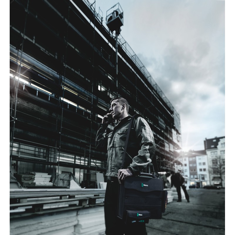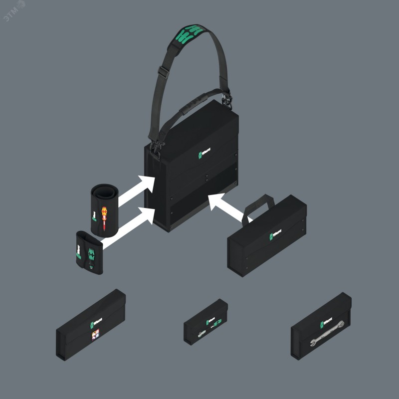 - Дополнительная информация:1 прочный, сохраняющий форму контейнер для инструментов, с зоной на липучках, для прикрепления компонентов системы Wera 2go, а также мягких футляров и сумок Wera, снабжённых липучками, 1 ручка для переноски и 1 наплечный ремень для переноски, съёмный, с регулировкой по длине, с широкой передвигаемой мягкой накладкой. 1 подсумок с ручкой для переноски и видоизменяемым разделителем на липучках для получения до 5 внутренних карманов. Отличается высокой устойчивостью к порезам и проколам. 1 x 355.0x330.0x115.0, 1 x 38.0x1470.0, 1 x 105.0x165.0