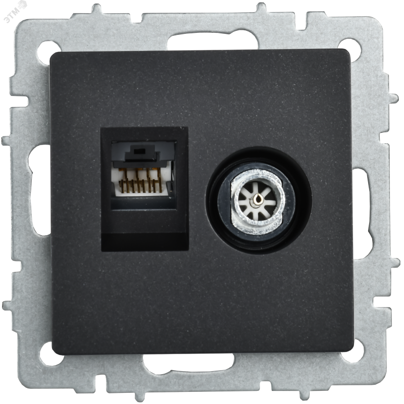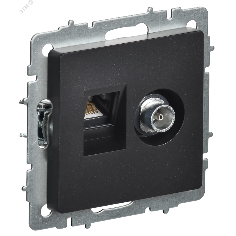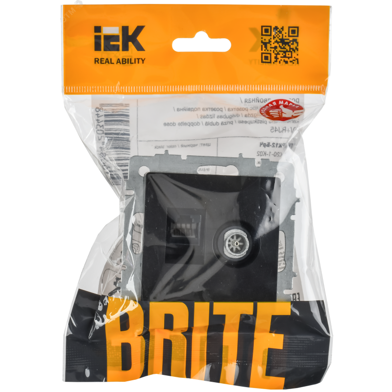 Розетка двойная TV+RJ45 кат.5E РТВ/РК12-БрЧ, цвет - черный, изделие выполнено из высококачественного пластика. Серия электроустановочных изделий 'BRITE' IEK – это гармоничный дизайн и европейский подход, надежность в эксплуатации и привлекательная цена. В линейке 'BRITE' использованы материалы премиум-класса. Цветовая палитра и широкий ассортимент позволяют решить все задачи при строительстве и ремонте жилой и коммерческой недвижимости, выполнить современные интерьеры в едином стиле.