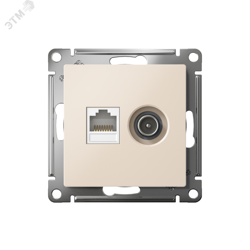 Механизм Systeme Electric (ранее Schneider Electric) серии AtlasDesign в бежевом цвете двойной розетки разъёмами RJ45 категории 5е и TV предназначен для удобного и быстрого подключения вашего компьютера и телевизора к соответствующим сетям. Лицевые детали из качественного ABS-пластика, устойчивого к царапинам и УФ-излучению. Усиленные прямые монтажные лапки для лучшей фиксации механизма в монтажной коробке.