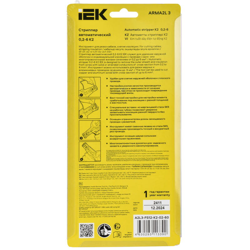 - Преимущества:Особенно удобен для снятия наружней оболочки с плоского провода. |Настройка усилия зачистки производится автоматически в зависимости от сечения провода, при этом не происходит повреждение токоведущей жилы.|В винт точной настройки для настройки момента срабатывания под изоляцию с разной толщиной и жесткостью.|Специальные вставки из марганцевой стали на рабочих губках позволяют уверенно захватывать изоляцию разной твердости без проскальзывания. |Оснащён ограничителем длины зачищаемого провода с разметкой.|Инструмент имеет сменное лезвие из стали SK5 позволяющее производить точный и аккуратный рез провода.|Инструмент оснащен двумя сильными возвратными пружинами. |Многокомпонентные рукоятки для надежного захвата и уверенного манипулирования.