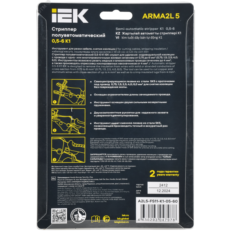 - Преимущества:Самоцентрирующиеся лезвия из стали SK5 с проточками под провод 0.75,1.5, 2.5, 4.0, 6.0 мм2 для снятия изоляции без повреждения жилы.|Оснащён ограничителем длины зачищаемого провода.|Инструмент оснащен двумя сильными возвратными пружинами. |Двухкомпонентные рукоятки для надежного захвата и уверенного манипулирования.|Инструмент имеет сменное лезвие из стали SK5 позволяющее производить точный и аккуратный рез провода.