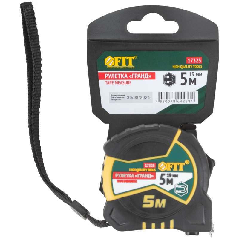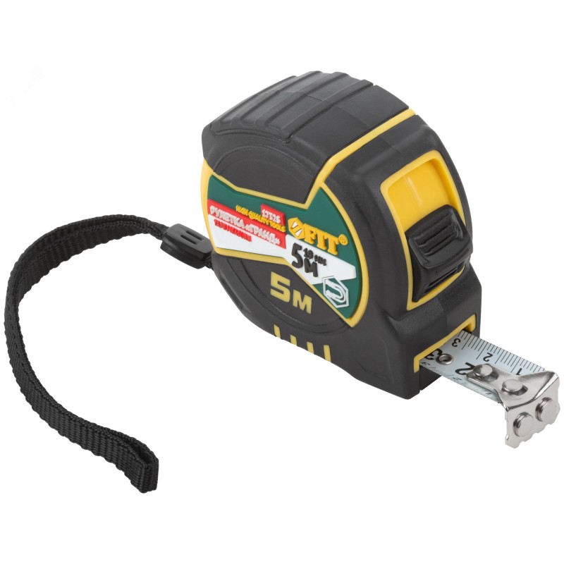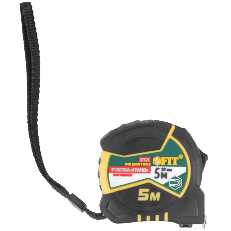 "Рулетка ""Гранд"", калибр.лента, нейлон.покр., магн.крючок, двойной стопор, прорезин.корпус 5 м х 19 мм"