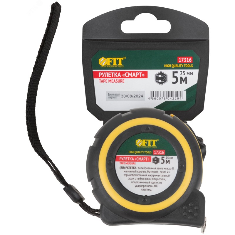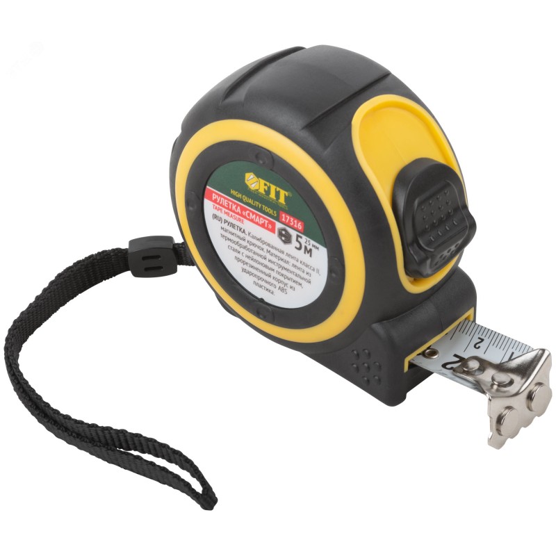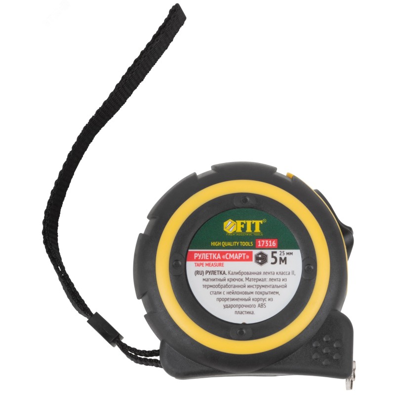 "Рулетка ""Смарт"", калибр.лента, нейлон.покр., магн.крючок, прорезиненный корпус 5 м х 25 мм"