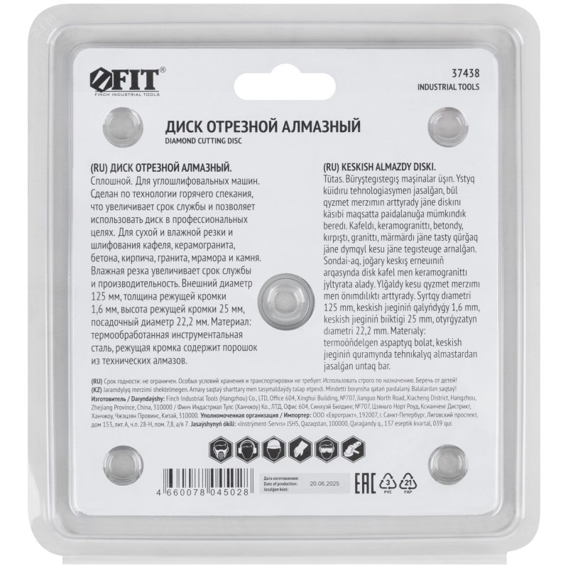 Для углошлифовальных машин. Применяется для сухой и влажной резки и шлифования кафеля, керамогранита, бетона, кирпича, гранита, мрамора и камня. Технология горячего спекания повышает прочность диска и его износостойкость. Повышенная концентрация алмазов на рабочей кромке обеспечивает высокий ресурс. Мелкозернистый алмазный порошок и сплошная режущая кромка способствуют чистому резу без сколов.