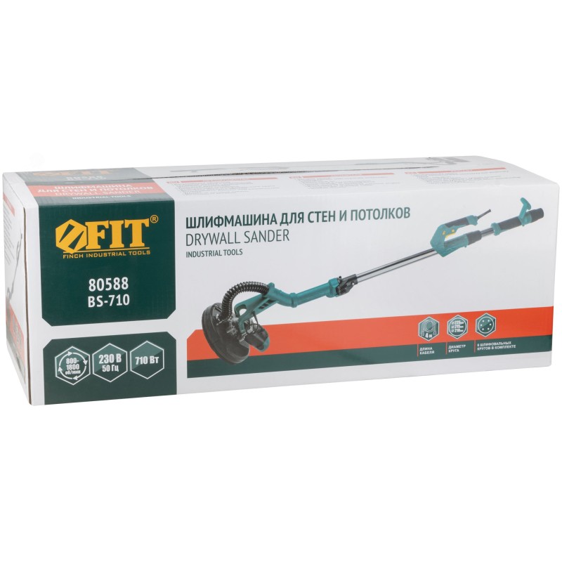 710 Вт, 700-1700 об/мин, 225/215/210 мм, 1400-1700 мм, 3,1 А, 4 кг, коробка. Регулировка оборотов, складная штанга с отдельным телескопическим удлинителем, фиксатор включения, подключение пылесоса, быстрая смена шлифовального круга, быстрый доступ к щеткам, возможность работы под различными углами, длинный сетевой кабель, резиновые всатвки.