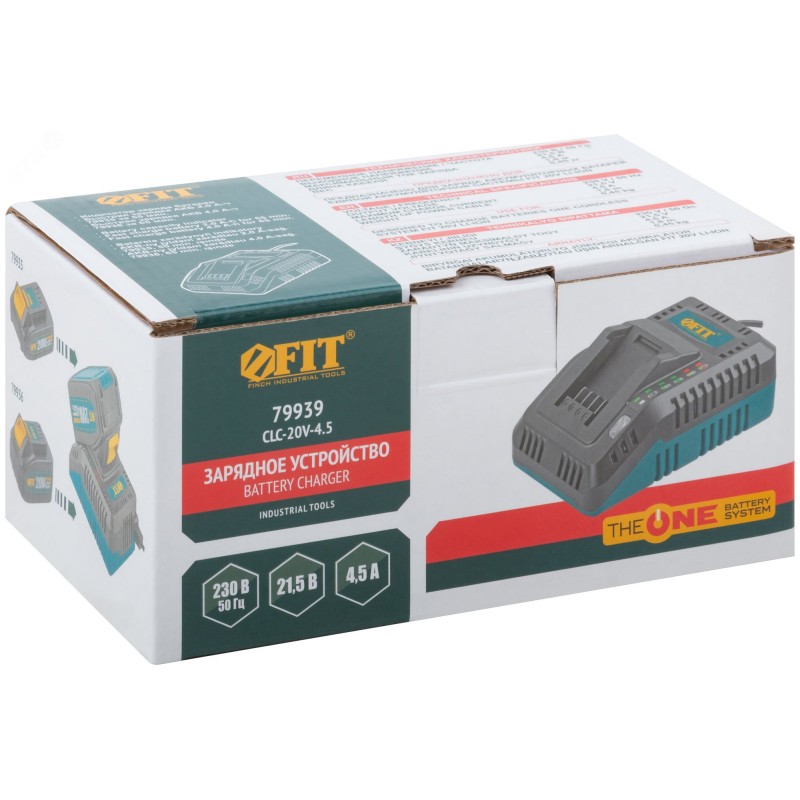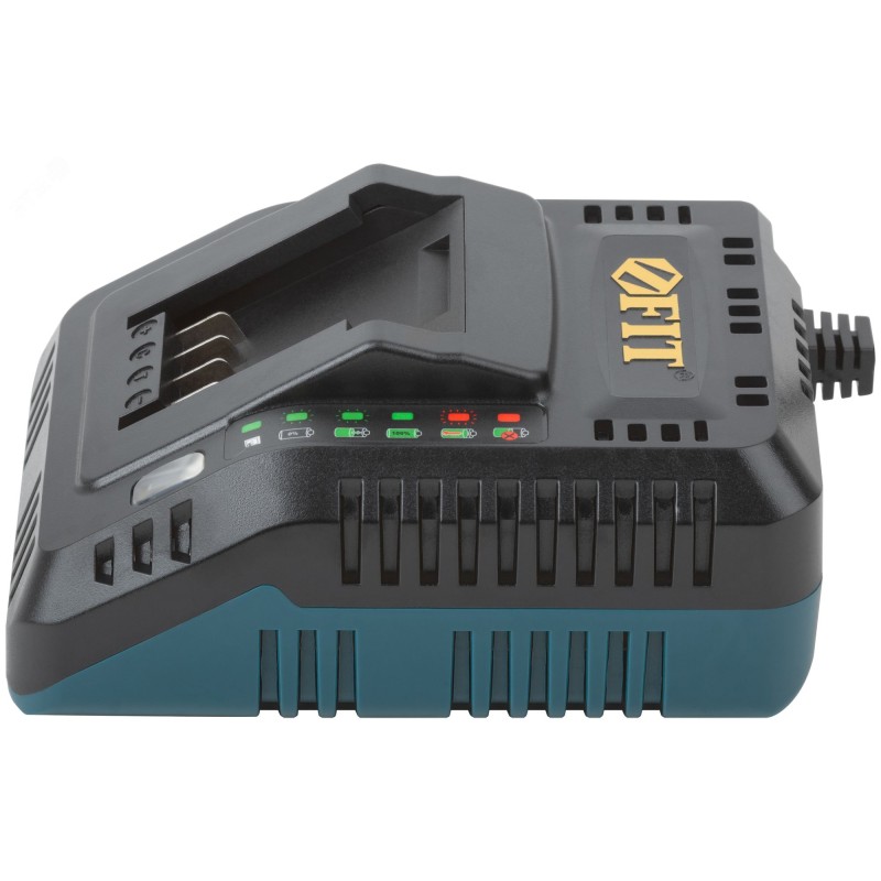 21,5 В, 4,5 А, 1,8 м, 0,45 кг, коробка. Предназначен для зарядки АКБ единой аккумуляторной системы FIT THE ONE. Быстрая зарядка АКБ 2,0 Ач 79935 за 55 минут. Быстрая зарядка АКБ 4,0 Ач 79936 за 65 минут. Индикатор заряда батареи.